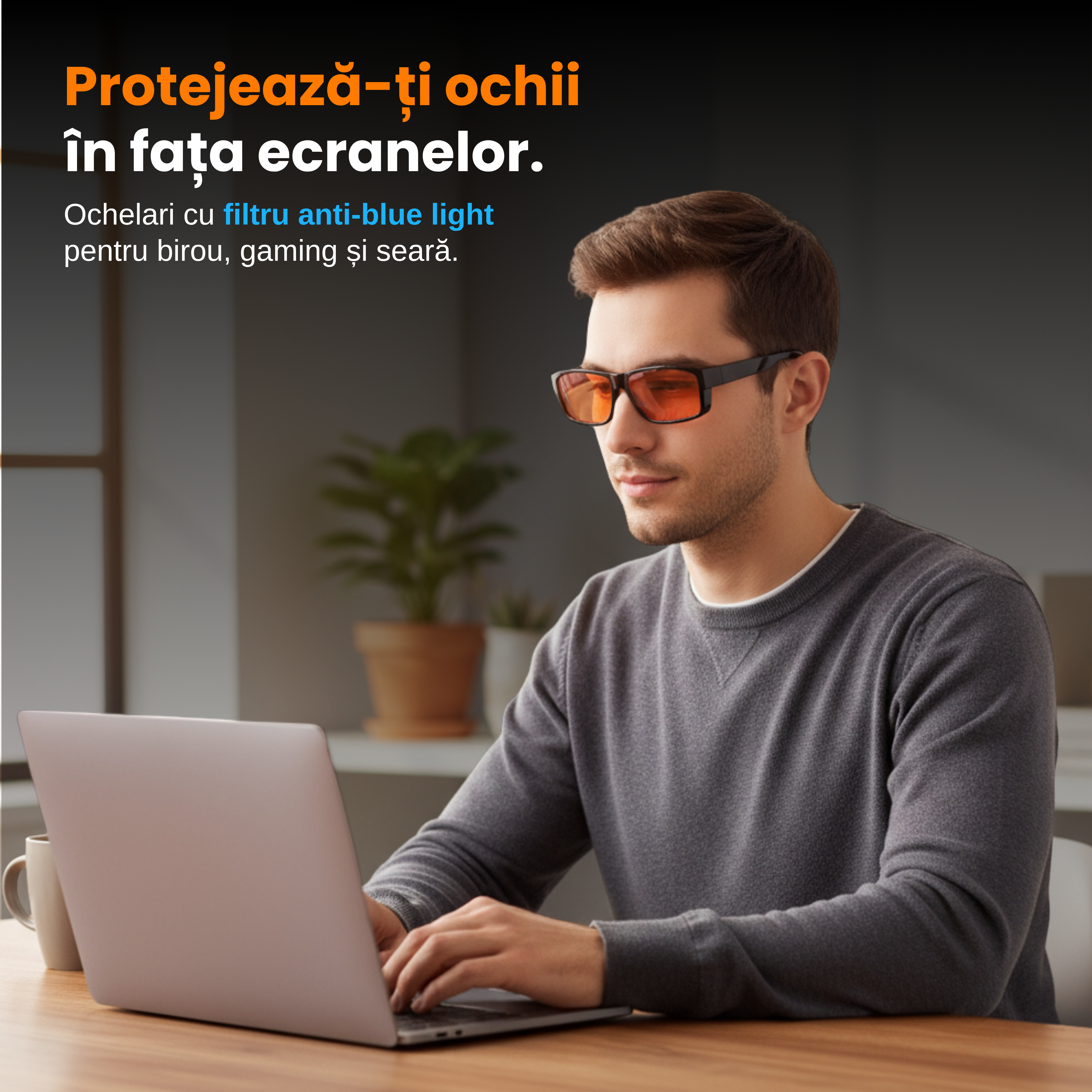 ✓ Poți lucra, citi sau urmări filme fără senzația de arsură în ochi.