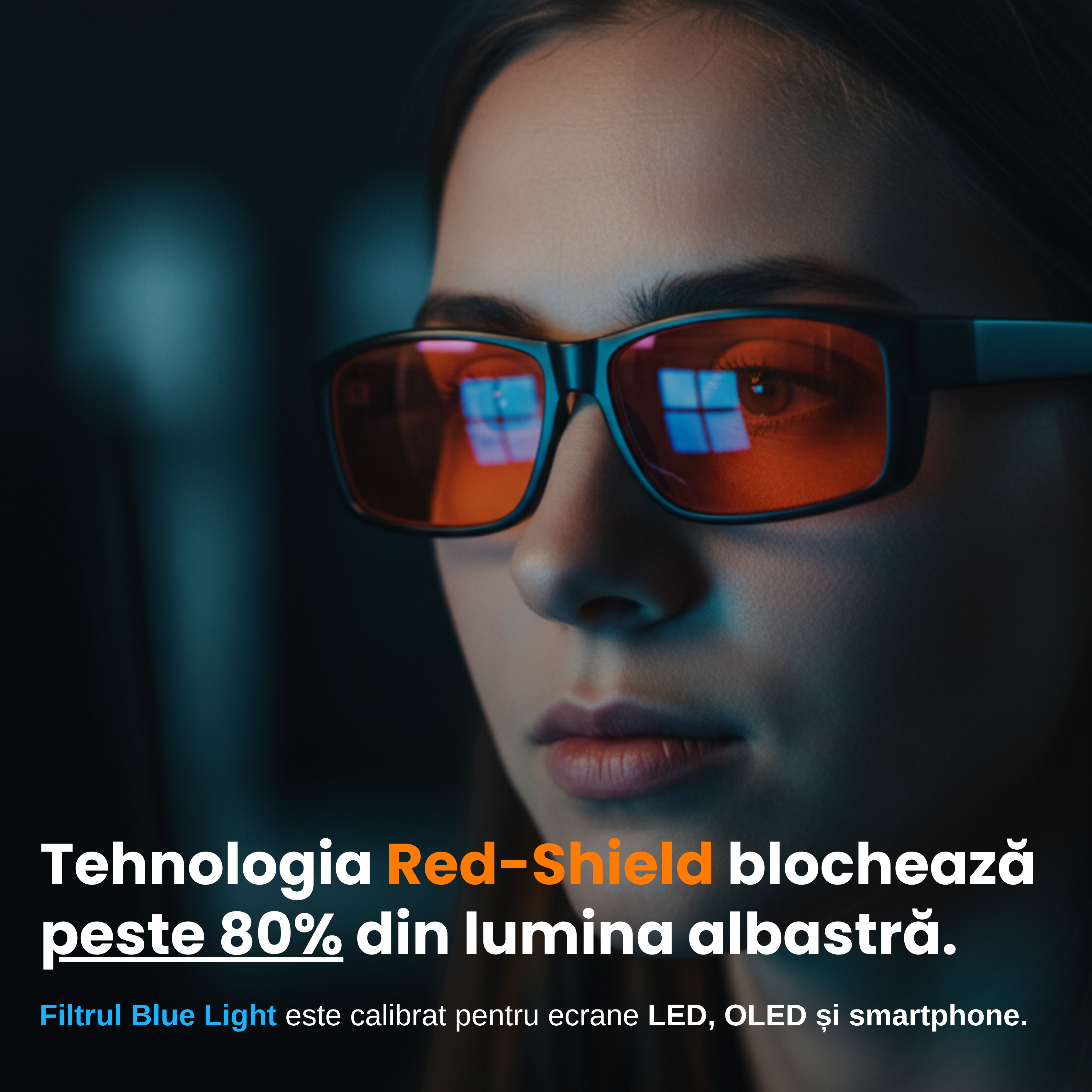 Designul ergonomic și lentilele cu protecție împotriva luminii albastre se adaptează perfect, oferind confort chiar și după ore întregi în fața ecranului.