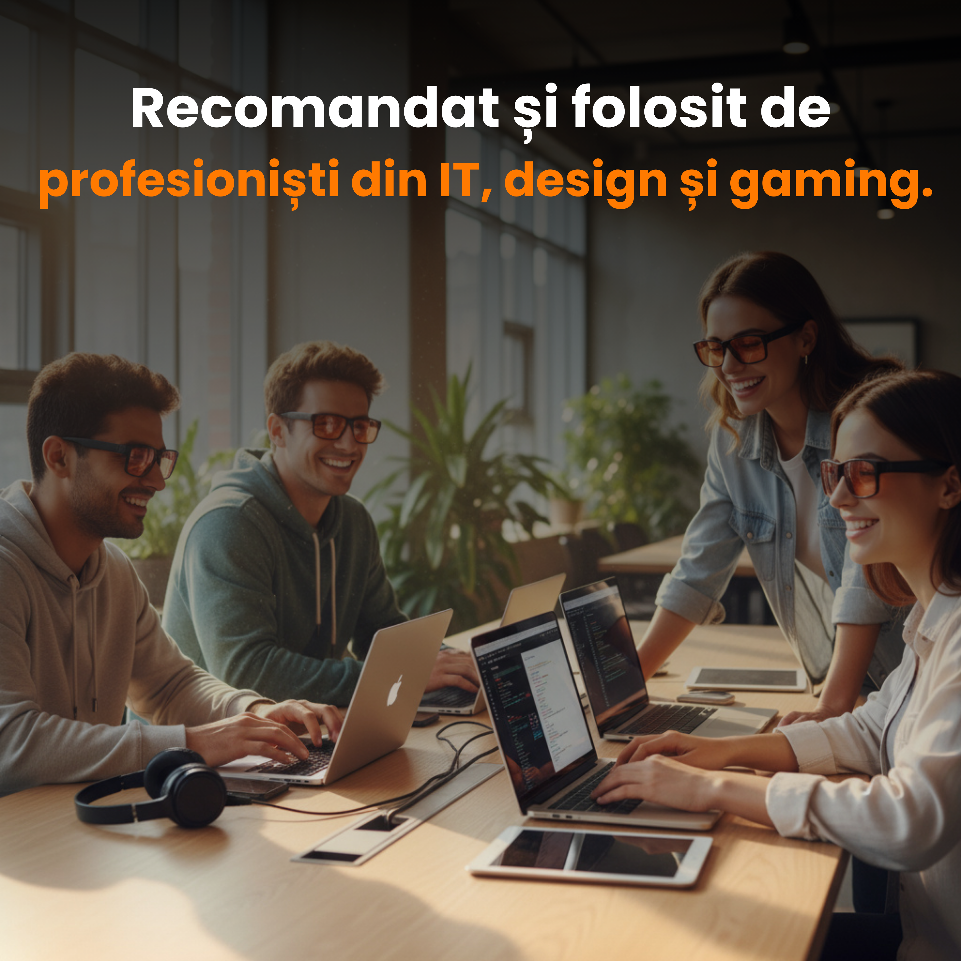 Îi poți purta la birou, acasă sau chiar în mașină. Lentilele protejează ochii fără să distorsioneze culorile naturale ale ecranului.