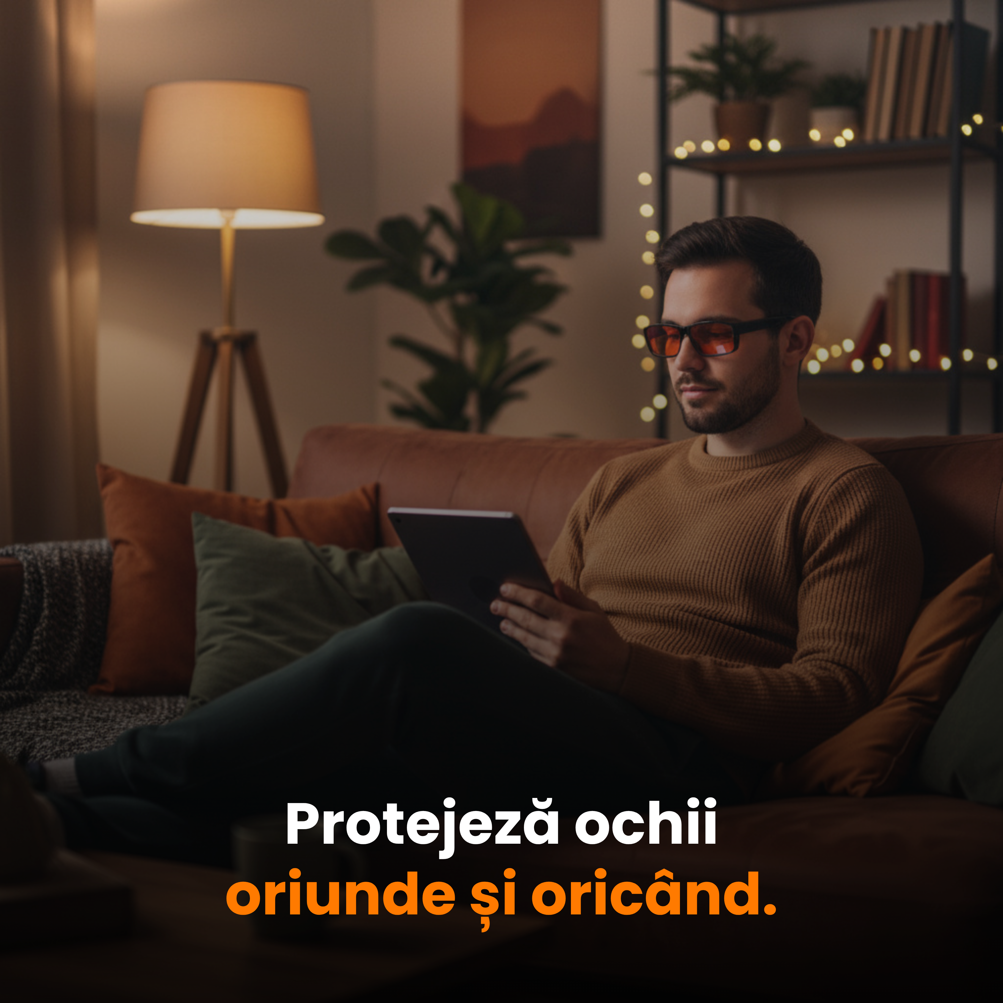 ✓ Poți lucra, citi sau urmări filme fără senzația de arsură în ochi.